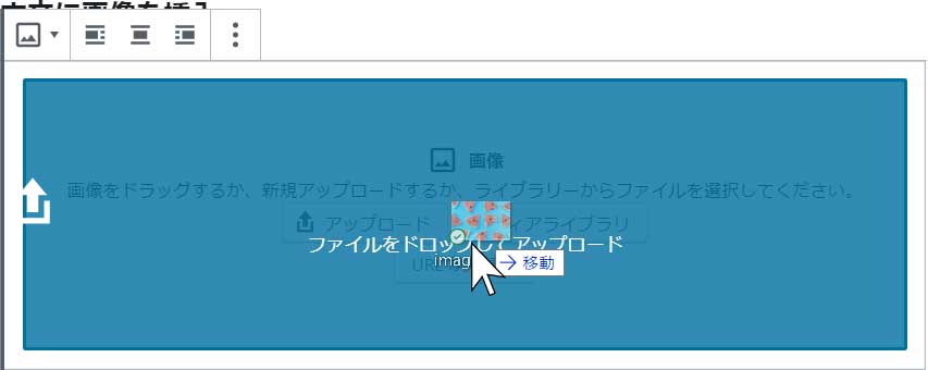 ❷画面中心に追加したい画像を左クリックを押したまま移動(ドラッグ)して持っていきます。