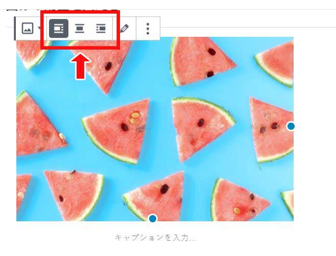 以下の赤枠部分で左寄せ、右寄せ、中央ぞろえなど、画像の配置を決めます。
