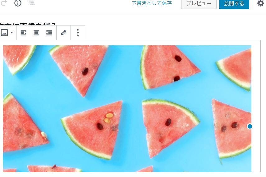 画像の周囲に表示される青丸をドラッグするだけでサイズを簡単に変更できます。